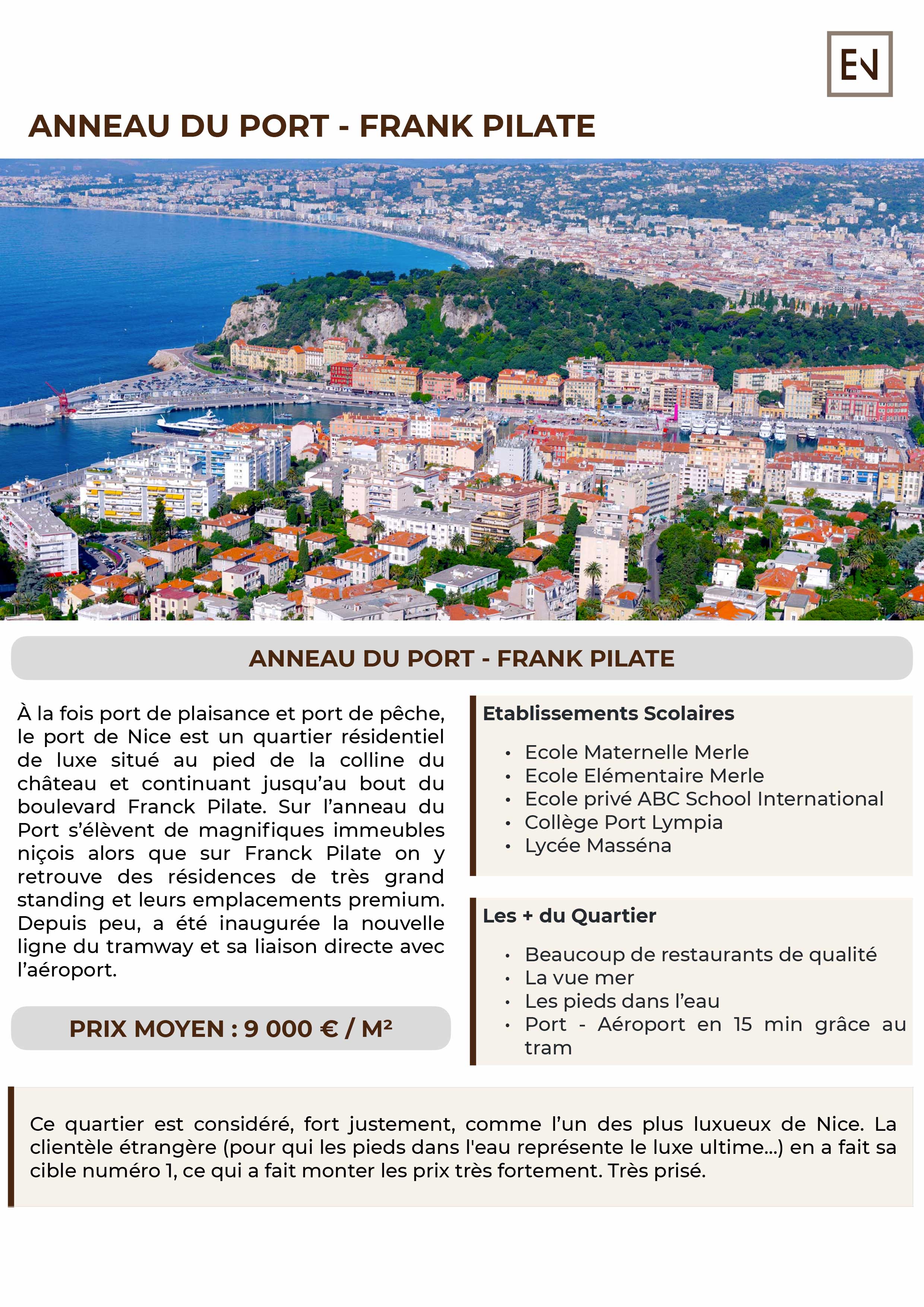 Sur l’anneau du Port s’élèvent de magnifiques immeubles niçois alors que sur Franck Pilate on y retrouve des résidences de très grand standing et leurs emplacements premium.