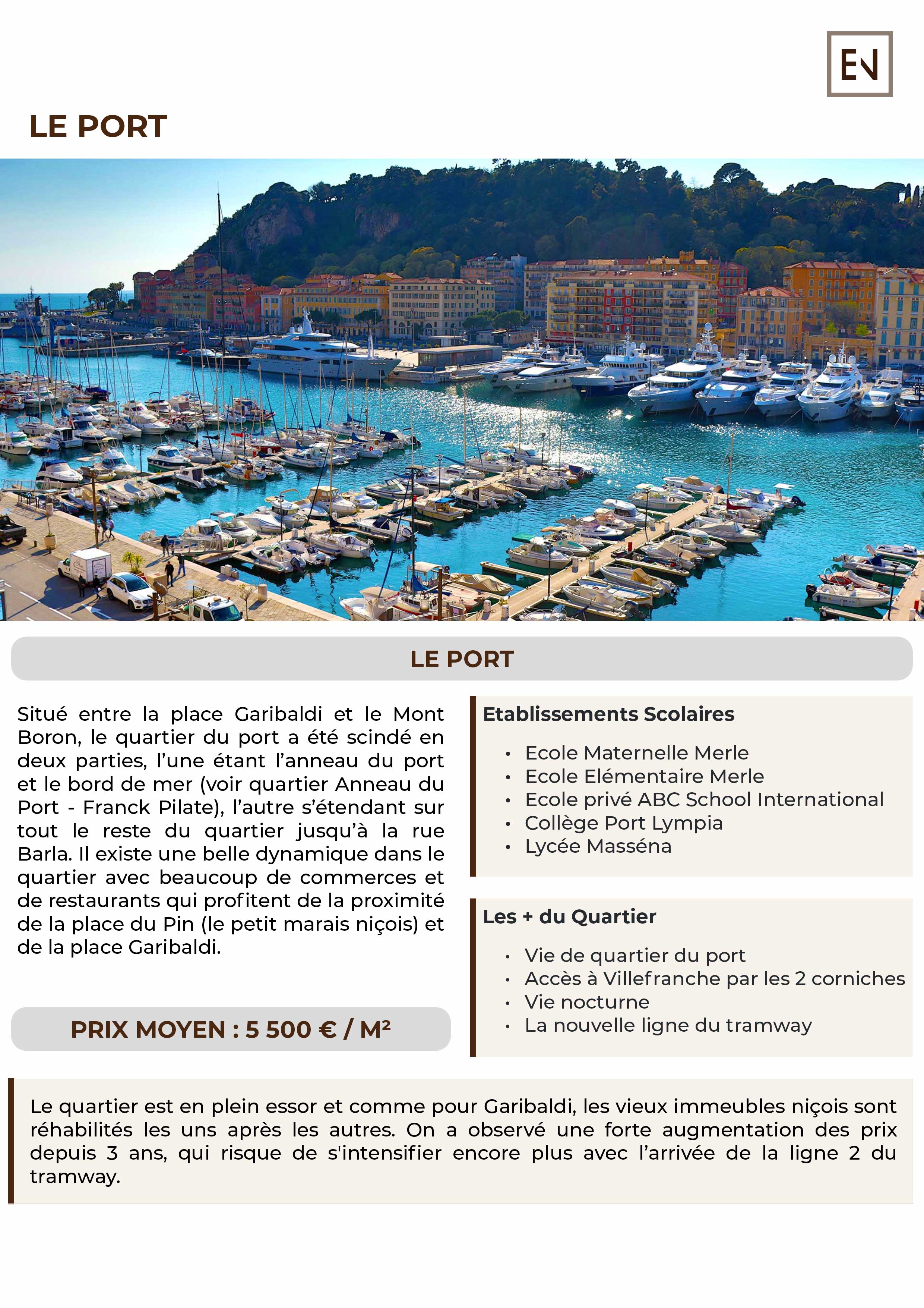 Situé entre la place Garibaldi et le Mont Boron, le quartier du port a été scindé en deux parties, l’une étant l’anneau du port et le bord de mer (voir quartier Anneau du Port - Franck Pilate), l’autre s’étendant sur tout le reste du quartier jusqu’à la rue Barla.