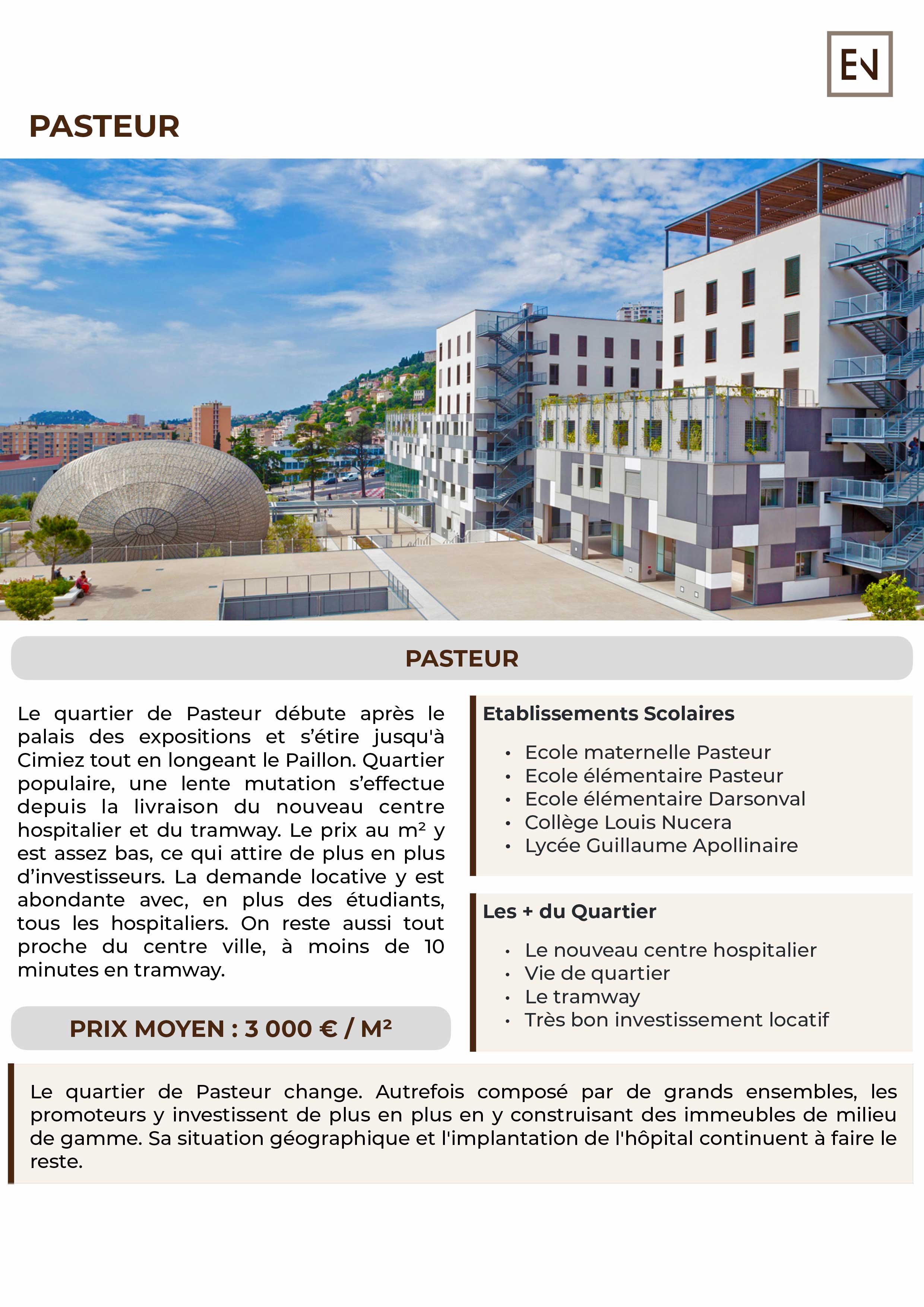 Le quartier de Pasteur change. Autrefois composé par de grands ensembles, les promoteurs y investissent de plus en plus en y construisant des immeubles de milieu de gamme. Sa situation géographique et l'implantation de l'hôpital continuent à faire le reste.
