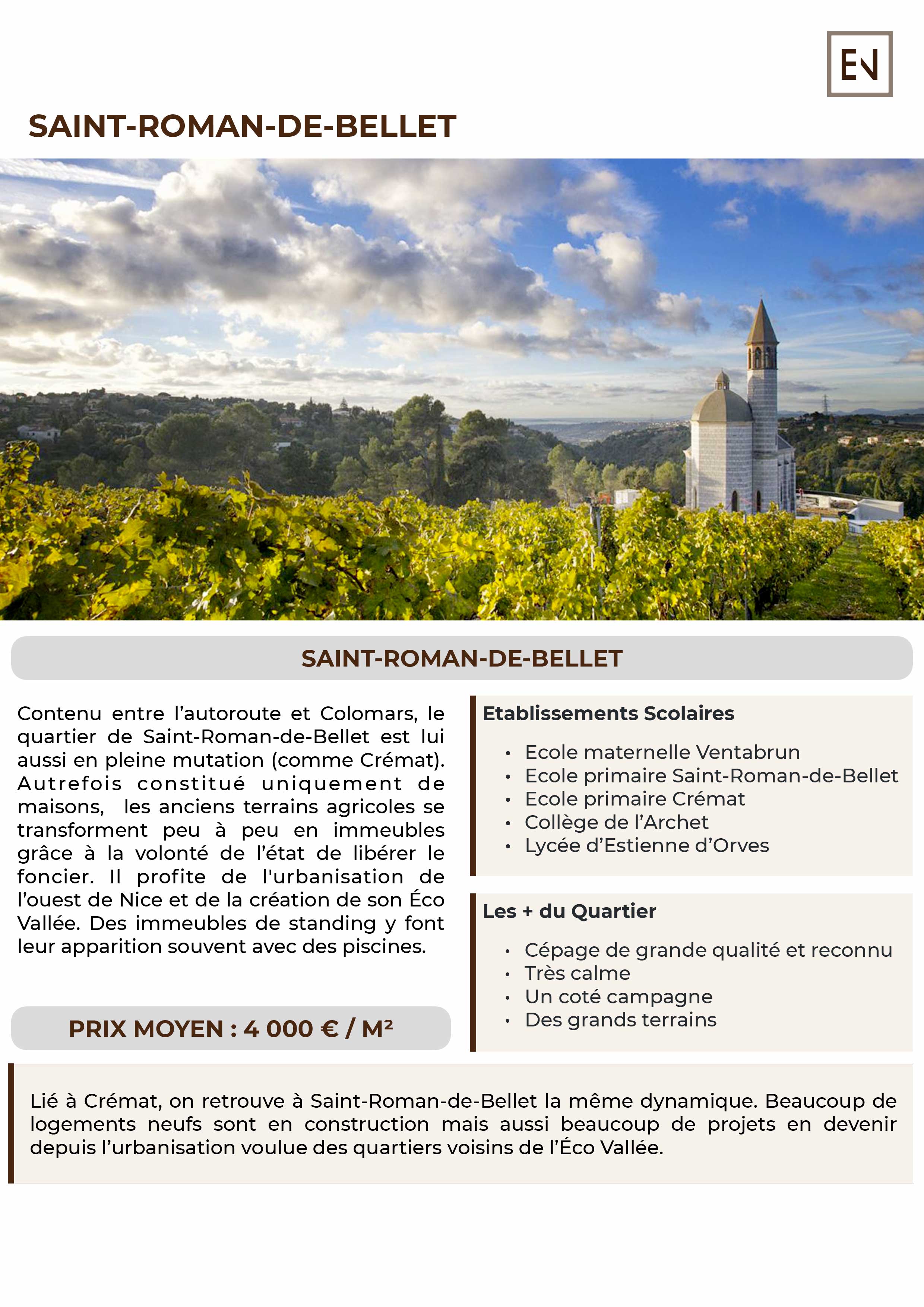 Contenu entre l’autoroute et Colomars, le quartier de Saint-Roman-de-Bellet est lui aussi en pleine mutation (comme Crémat).